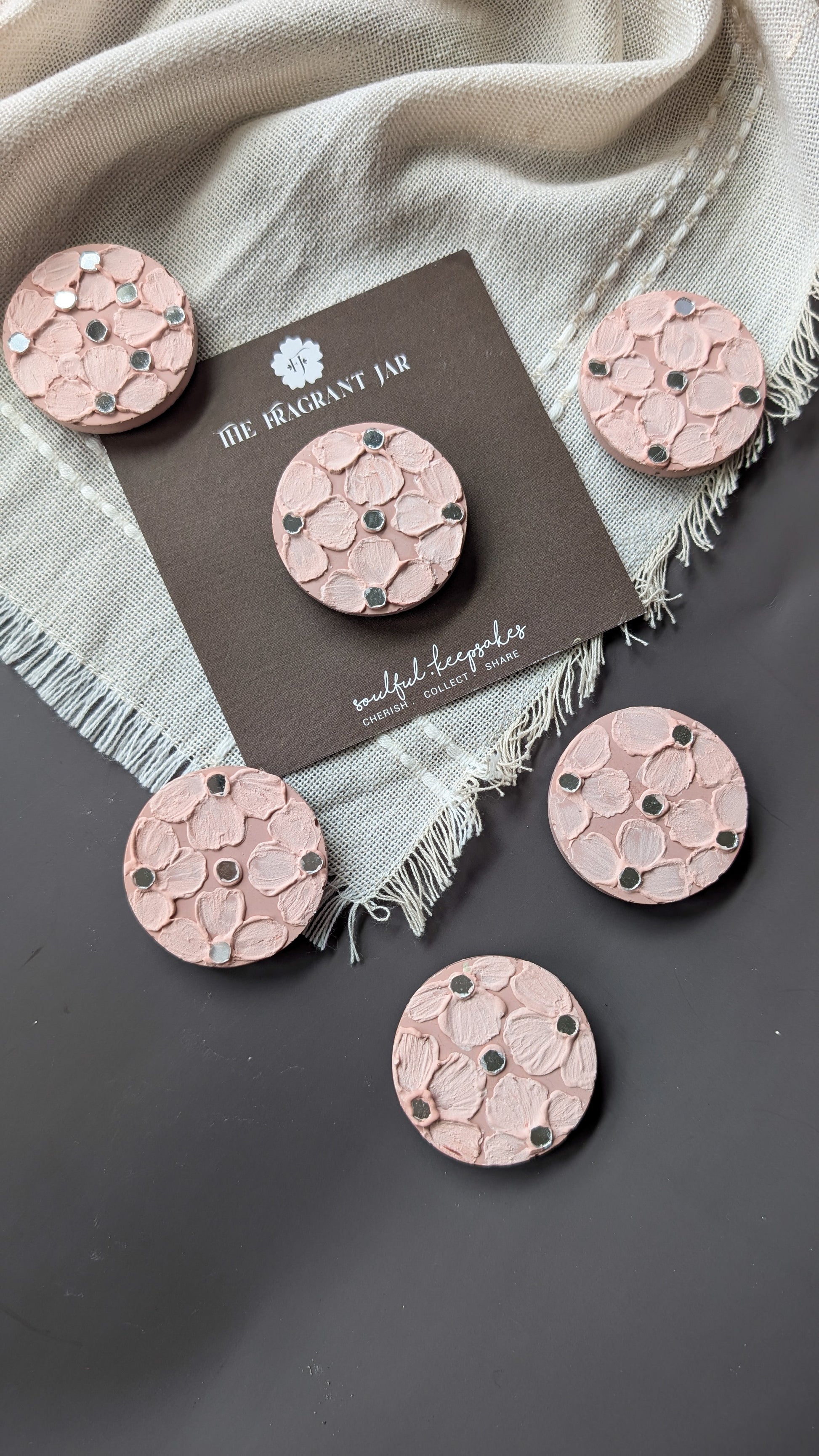 “Handcrafted Concrete Fridge Magnets – Floral Textured Art with Mirror Inlay | The Fragrant Jar Collectibles”
